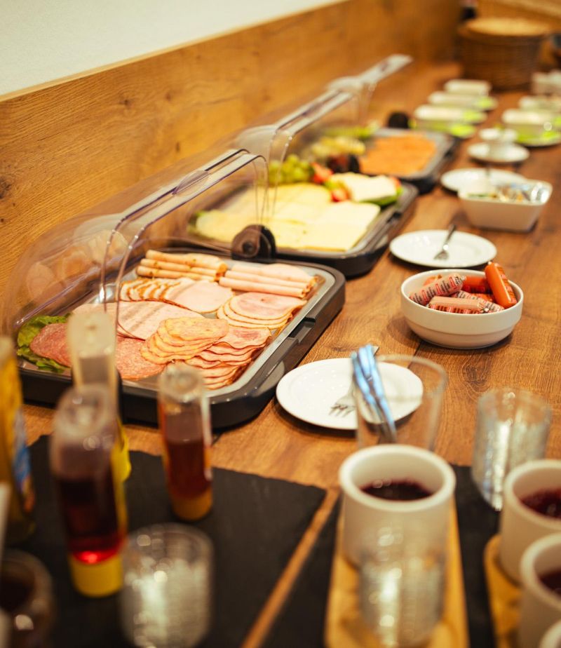 Unser Frühstücksbüffet bietet Ihnen eine große Auswahl an leckeren und frischen Speisen. Jeden Morgen stellen wir eine Vielzahl an Brotsorten, Marmeladen, Aufstrichen und Wurst- und Käsespezialitäten für Sie bereit.